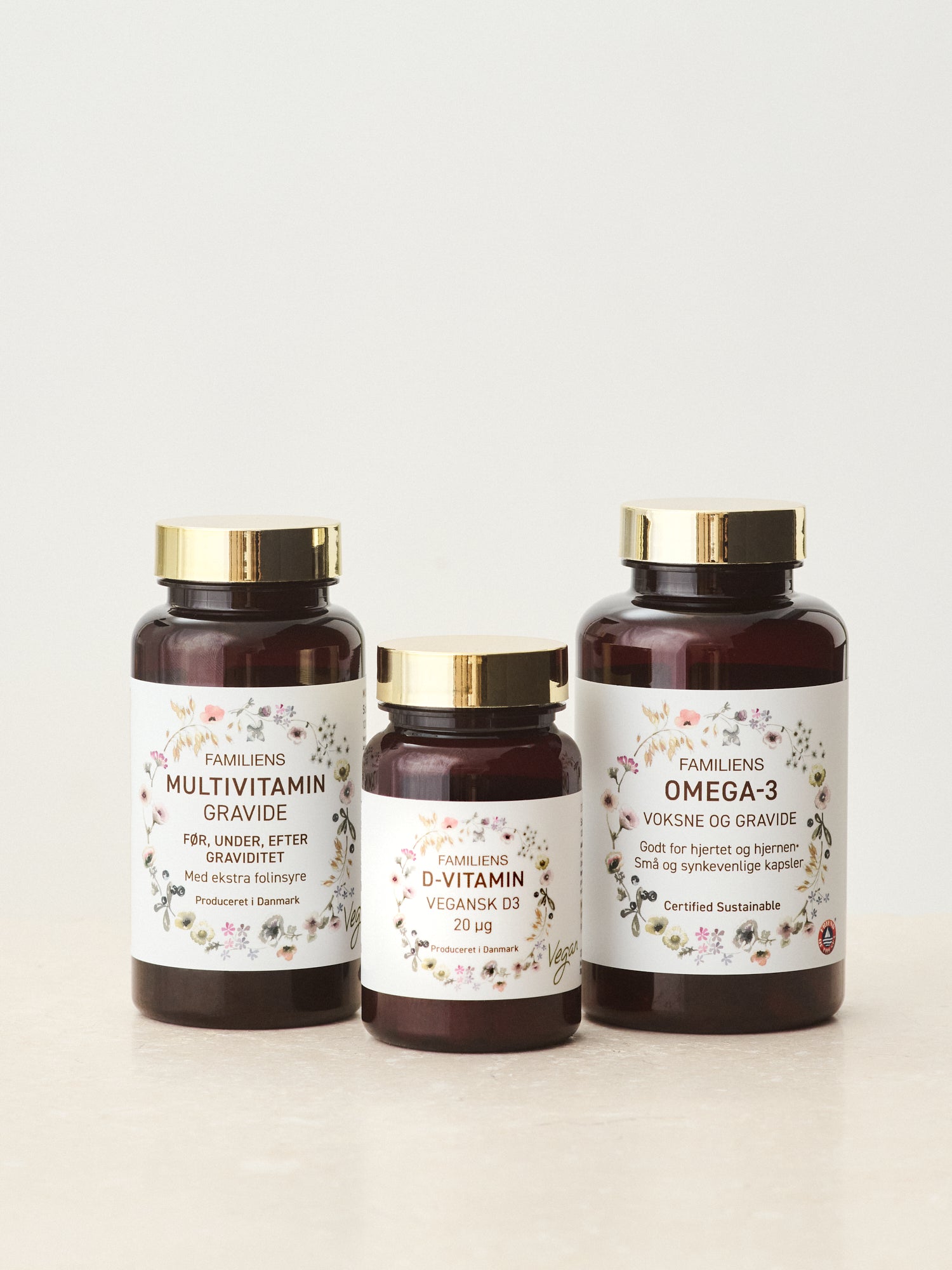 Kvinder i efterfødslen anbefales 1 tablet Multivitamin gravide, 1 tablet D-vitamin og 2 kapsler Omega-3 om dagen. Den anbefalede dosis bør ikke overskrides.